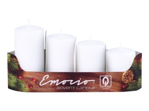 Svíčka adventní 60 x 40 mm, BÍ (4 ks). průměr: 3,8 cm výška: 6 cm barva: bílá balení: 4 ks doba hoření: 7 hodin / 1 svíčka Vysoká kvalita parafinu zaručuje vyhoření a nestékání svíčky.
