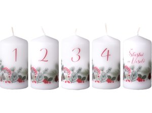 Sada adventních svíček válcového tvaru se špičatou hlavou.