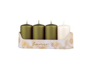 Svíčky Emocio – válec 40×75 mm, sada 4 ks, metalická matná zelená, mix.