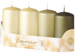 Sada 4 válcových svíček 65 mm – hladký a rýhovaný, zeleno-krémový mix, elegantní.