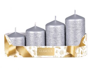 Stříbrná lesklá adventní svíčka ve tvaru válce.