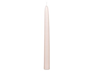 Stolní svíčka kónického tvaru, hladká, hladká, metalická, lesklá.
