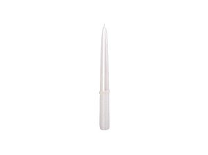 Matná béžová kónická svíčka. Průměr: 2,3 cm, výška: 24,5 cm.