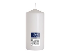 Svíčka ve tvaru válce. Její povrch je hladký v úpravě metalický mat.