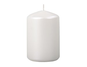 Svíčka ve tvaru válce s hladkým povrchem, v provedení metalický lesk.