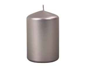 Svíčka ve tvaru válce s hladkým povrchem, v provedení metalický lesk.