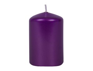 Svíčka ve tvaru válce s hladkým povrchem, v provedení metalický lesk.