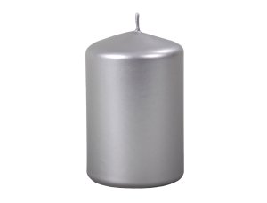 Svíčka ve tvaru válce s hladkým povrchem v provedení metalický lesk.