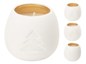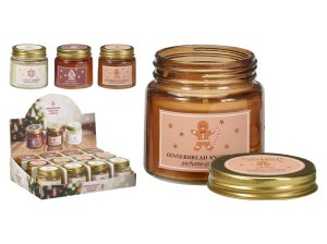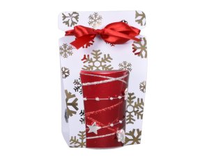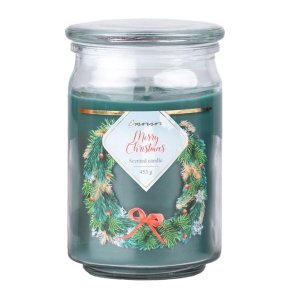 Vánoční vonná svíčka ve skle s dekorací girlandy.