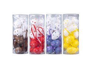 Vajíčko dekorační plastové barevné o velikosti 4x6 cm. 6 ks v organza sáčku.