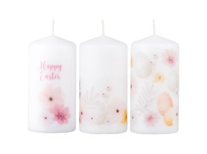 Válcová svíčka o rozměru 60×120 mm s motivem Happy Easter II.