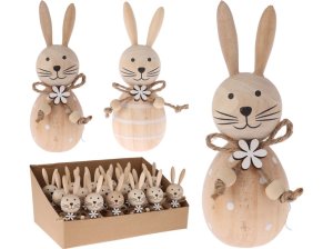 Zajíc dřevěný s béžovou sukní na postavení 11,5 x 20 cm