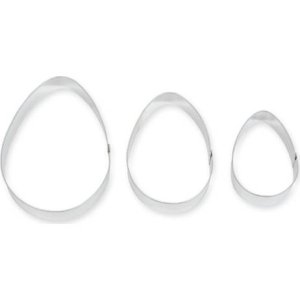 Sada pro snadné vykrojení cukroví ve tvaru vajíček v různých velikostech.