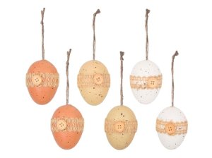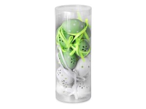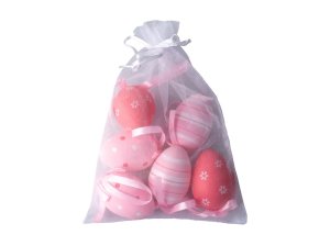 Kraslice 6 ks, 60 mm, různé vzory v organzovém sáčku, mix barev.