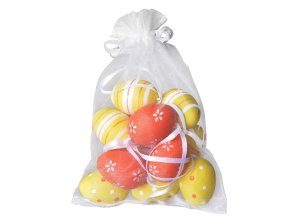 Kraslice 12 ks, 40 mm, různé vzory v organzovém sáčku, mix barev.