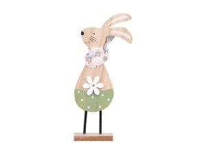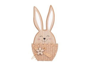 Zajíc dřevěný s kytkou na postavení 8 x 30 cm