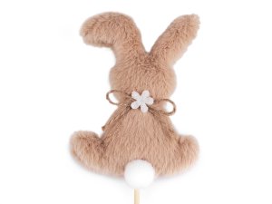 Dekorační zajíček je plyšový, hebký na dotek a působí roztomile.