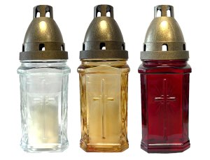 Stylová hřbitovní lucerna vyrobená ze skla s moderním LED osvětlením.