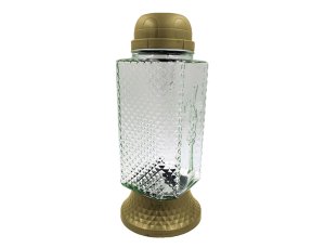 Skleněná hřbitovní lampa ve tvaru koule, s bohatým reliéfním zdobením.