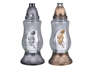 Elegantní hřbitovní lucerna Glamur o výšce 26 cm s čirým designem a motivem růže.