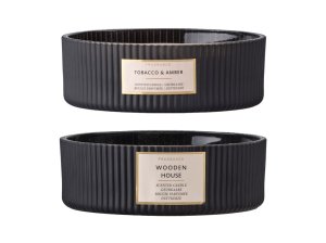 Svíčka ve skle rýhovaná vonná mix v černé barvě 178x60 mm