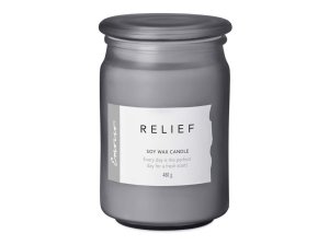 Sojová svíčka Emocio Wellness Relief – 93×142 mm se skleněným víčkem, uklidňující vůně.
