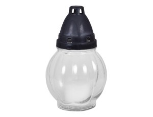 Hřbitovní lampa kulatého tvaru s podélnými rýhami.