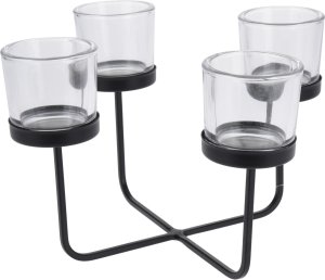 4ramenný svícen 25 x 19,5 x 15,9 cm, sklo/kov. ČER. rozměry: 25 x 19,5 x 15,9 cm materiál: kov, sklo barva: černá Kovový čtyřramenný svícen jistě využijete nejen během vánočních svátků, ale bude vkusným …