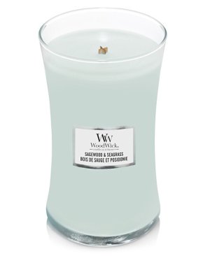 Vonná svíčka loď Sagewood & Seagrass přináší zážitek dokonalého pohodlí u hořícího krbu.