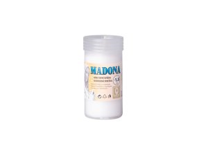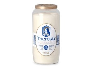 Litá svíčka s bílým víčkem a obrázkem, vhodná pro hřbitovní použití.