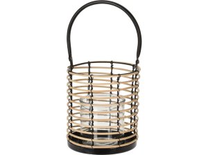Dřevěná lampa s uchem v kombinaci černé a přírodní – dekorativní doplněk s možností zavěšení.