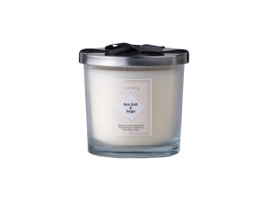 Vonná svíčka Emocio Sea Salt & Sage – sklo s plechovým víčkem a dekorativní mašličkou, svěží aroma mořské soli a šalvěje.