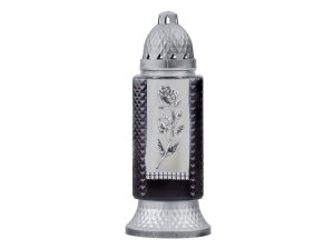 Hřbitovní sklo s černým víčkem.