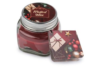Vonná svíčka ve skle a papírové krabičce s mašličkou.