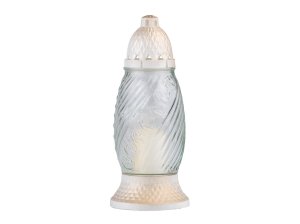 Hřbitovní sklo v čiré barvě.