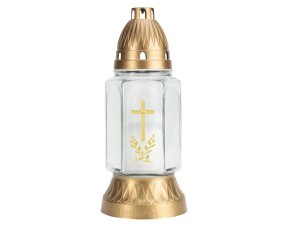 Krásná kvalitní skleněná hřbitovní svíčka s vyměnitelnou parafínovou náplní.