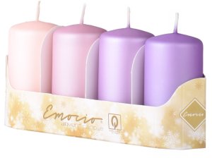 Vonná svíčka ve skle s dekorativním reliéfem, dostupná v různých jemných barvách.