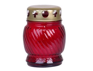 doba hoření: 24 hod výška: 9 cm hmotnost: 80 g parafín materiál: plast barva: bílá, červená Hřbitovní svíčka 9 cm s ochranným víčkem proti dešti a proti uhašení plamínku větrem.