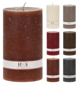 Svíčka pr. 9 x 15 cm, mix 6 barev, rustikální povrch. průměr: 9 cm výška: 15 cm hmotnost: 450 g 1 knot mix barev: červená, zelená, bílá, tm. hnědá, sv. hnědá, béžová Jednobarevná svíčka ve tvaru válce …
