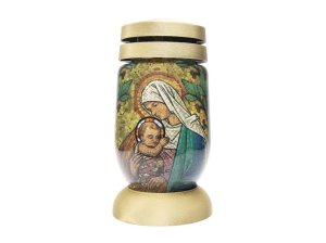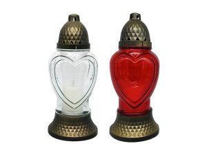 Hřbitovní svíčka s víčkem a motivem obrázku.