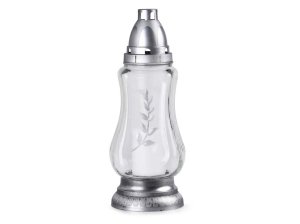 Hřbitovní sklo zdobené stříbrnými kamínky.