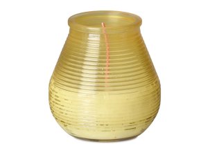 Zahradní žlutá svíčka ve skle s vůní Citronella proti komárům.
