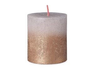 Rustikální svíčka ve tvaru válce.