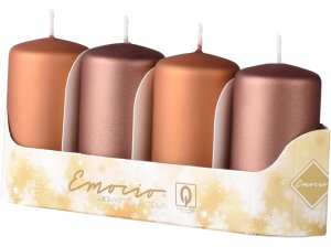 Světle růžová svíčka ve tvaru válce o průměru 7 cm a výšce 9 cm.