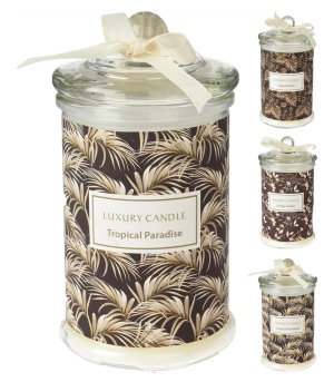 Svíčka vonná, sklo, pr. 8 cm, s víčkem, mix dekorů. průměr: 8 cm výška: 14 cm hmotnost: 610 g / 230 g materiál: sklo, vosk, textil mix 3 dekory / vůně: tropical paradise, jungle safari, island palm Svíčka …