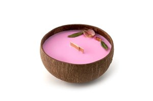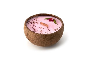 Svíčka z kokosu - vůně Růže - Sójové svíčky v kokosové skořápce jsou krásnou ozdobou a dekorací.