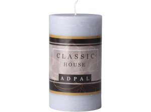 Bílá svíčka ve tvaru válce o průměru 7 cm a výšce 8 cm.