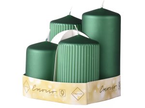 Vonná svíčka ve tvaru válce, originálně zdobená svislým žebrováním po celé délce.