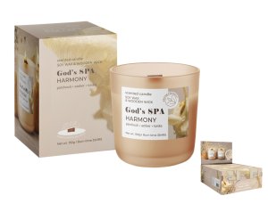 Vonná svíčka ve skle s dřevěným knotem.
