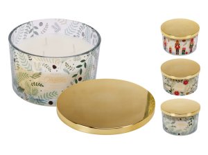 Dekorativní sklo Bolsius s vánočními motivy – krásná sváteční atmosféra se světlem svíčky.